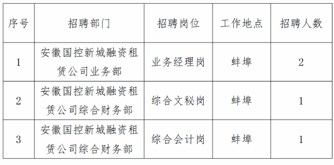 附件:《安徽國(guó)控新城融資租賃有限公司2024年社會(huì)招聘崗位信息表》