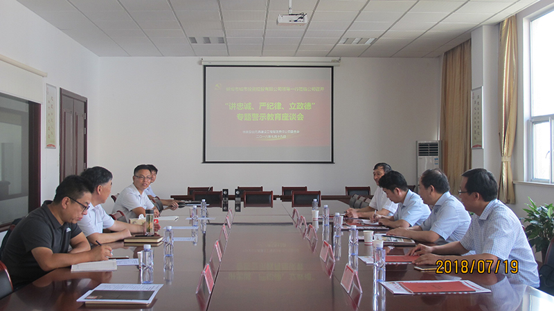 四是開展一次基層走訪座談。7月19日,公司黨委班子開展一次以“走基層聽心聲、凈思想鑄忠誠”為主題的“講忠誠、嚴紀律、立政德”專題警示教育基層走訪座談活動。公司黨委班子深入公司結對非公企業(yè)聯(lián)系點安徽元鼎建設工程有限公司和寶龍工程機械貿易公司,聽取企業(yè)黨建工作開展情況和黨員先鋒模范作用發(fā)揮情況,同時,公司黨委書記周學保同志圍繞堅定黨員理想信念、強化忠誠意識,在各個領域中如何發(fā)揮黨員帶頭作用與大家進行了交流探討,聽取基層一線黨員的意見建議,將“講忠誠、嚴紀律、立政德”專題警示教育引向深入。