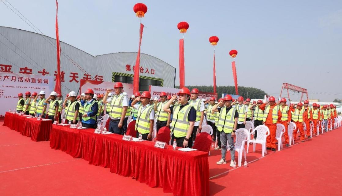 2023年6月1日,五蒙高速公司在固鎮(zhèn)縣TJ-04標拌合場站內(nèi)舉辦2023年安全生產(chǎn)月活動啟動儀式,活動主題為“人人講安全、個個會應急”。五蒙高速公司全體成員及各參建單位代表參加,市交通運輸局、市交通質(zhì)監(jiān)大隊領導出席活動。